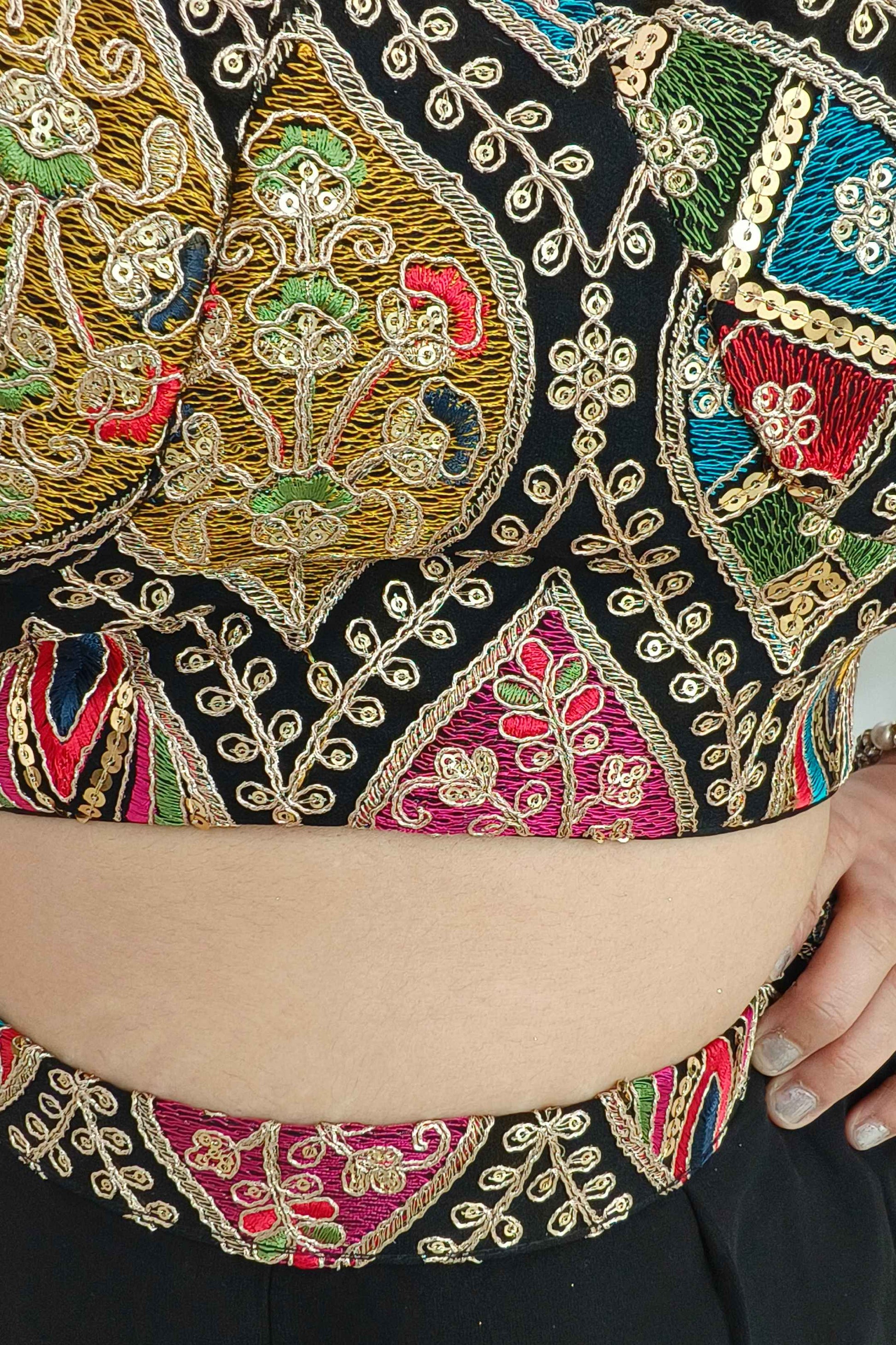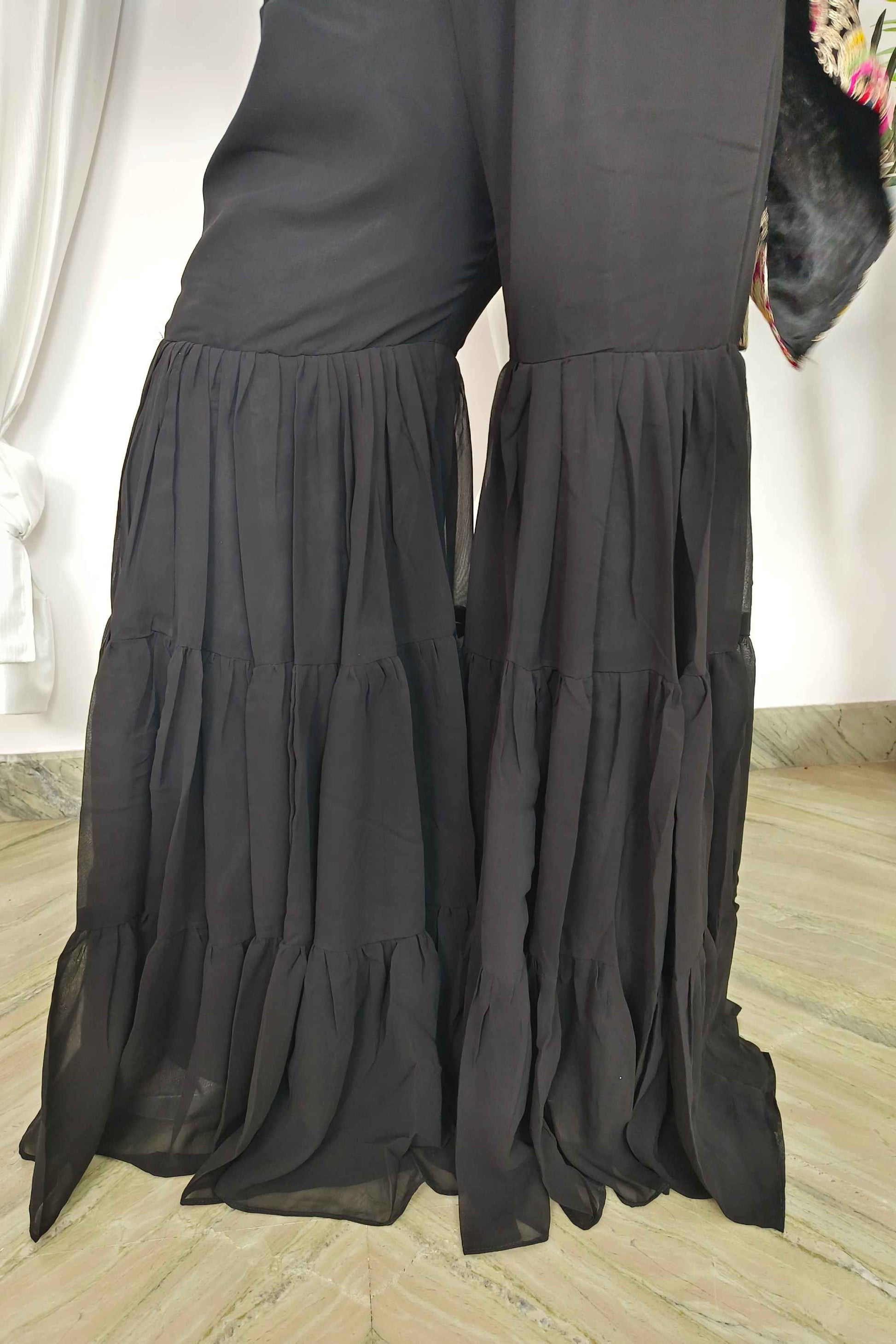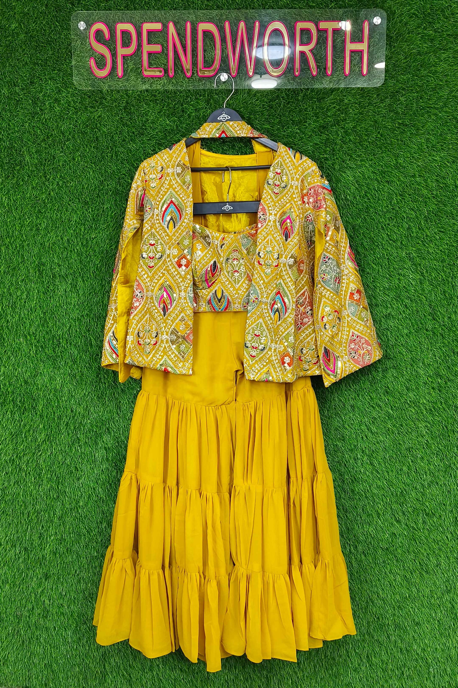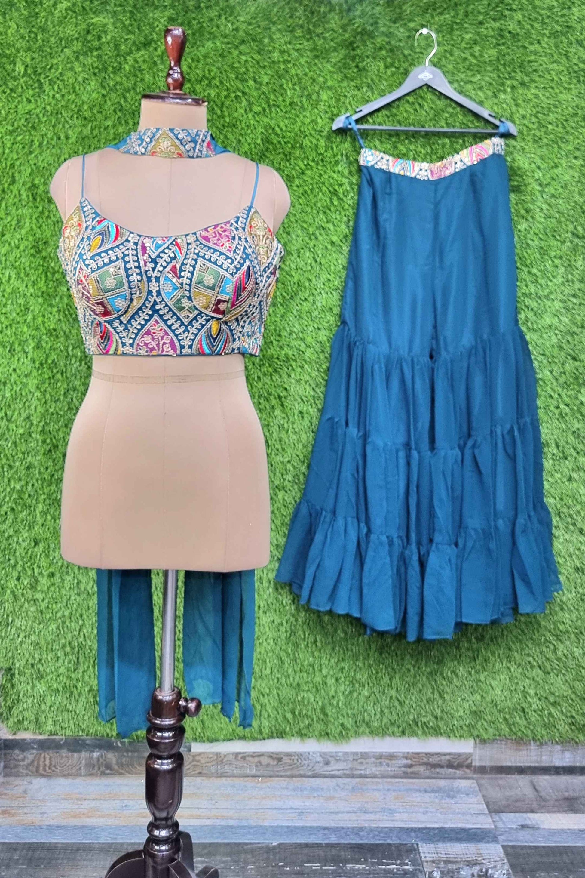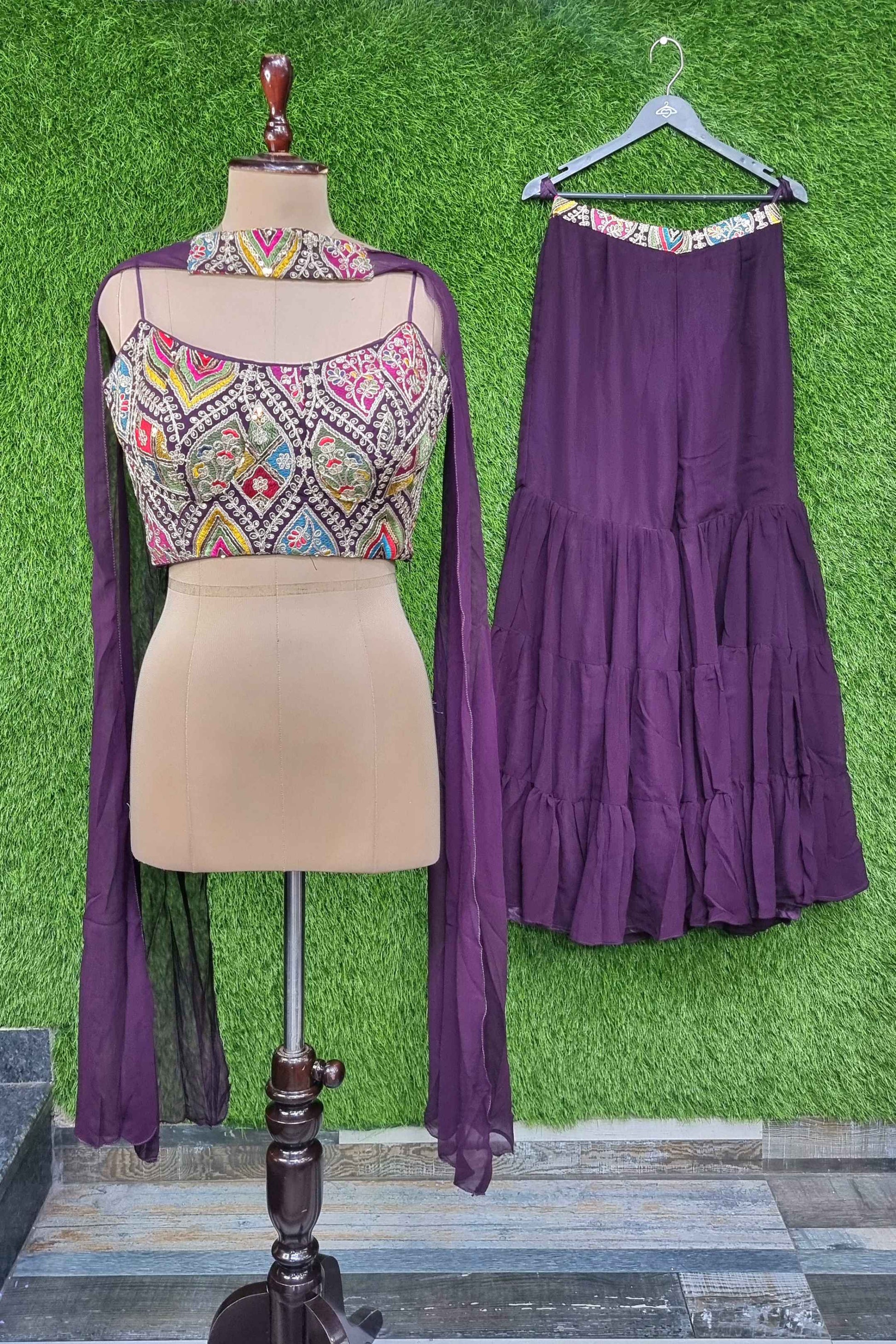 Noodle Strap Crop Top With Flared Sharara With Multi Embroidered Separate Over Jacket