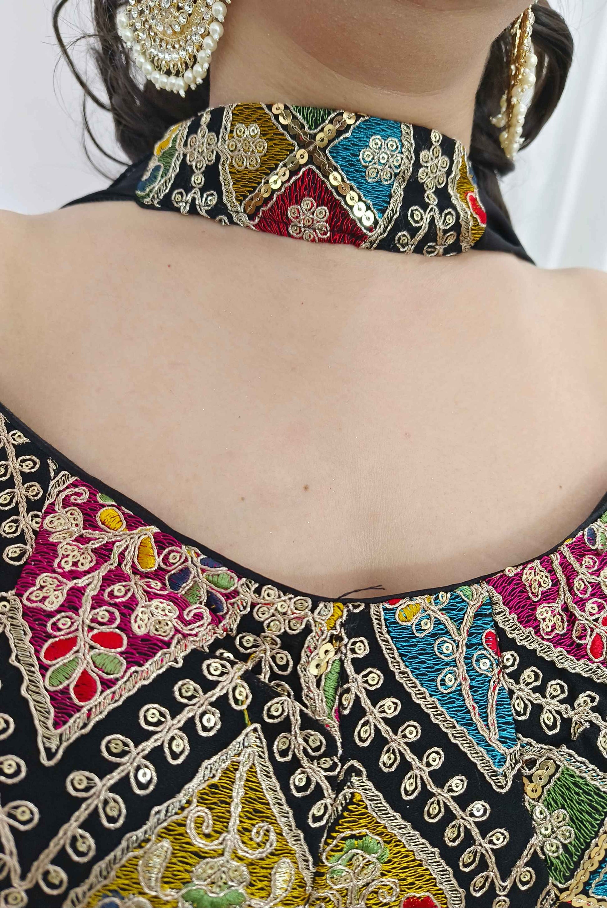 Beautiful Party Wear Kaftan Set with Mirror Work Embroidery