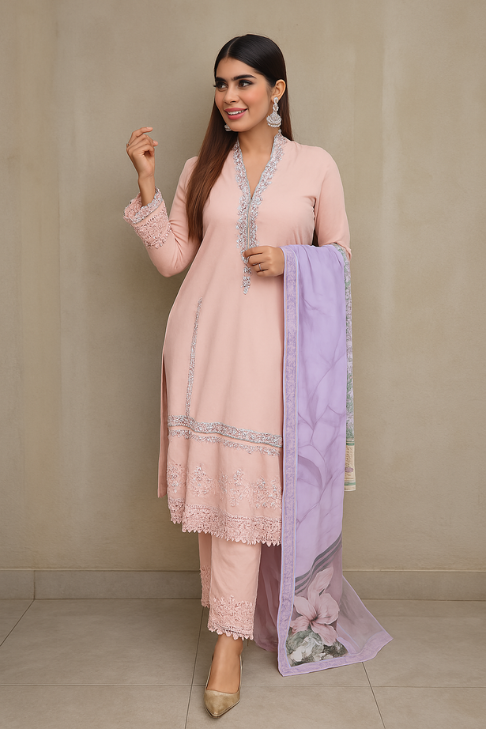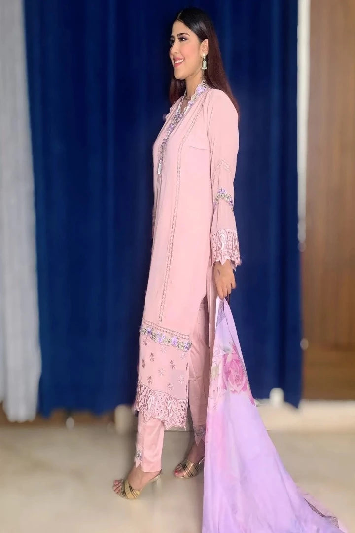 - Pakistani Style Embroidered Thread Work Kurta set in Pink