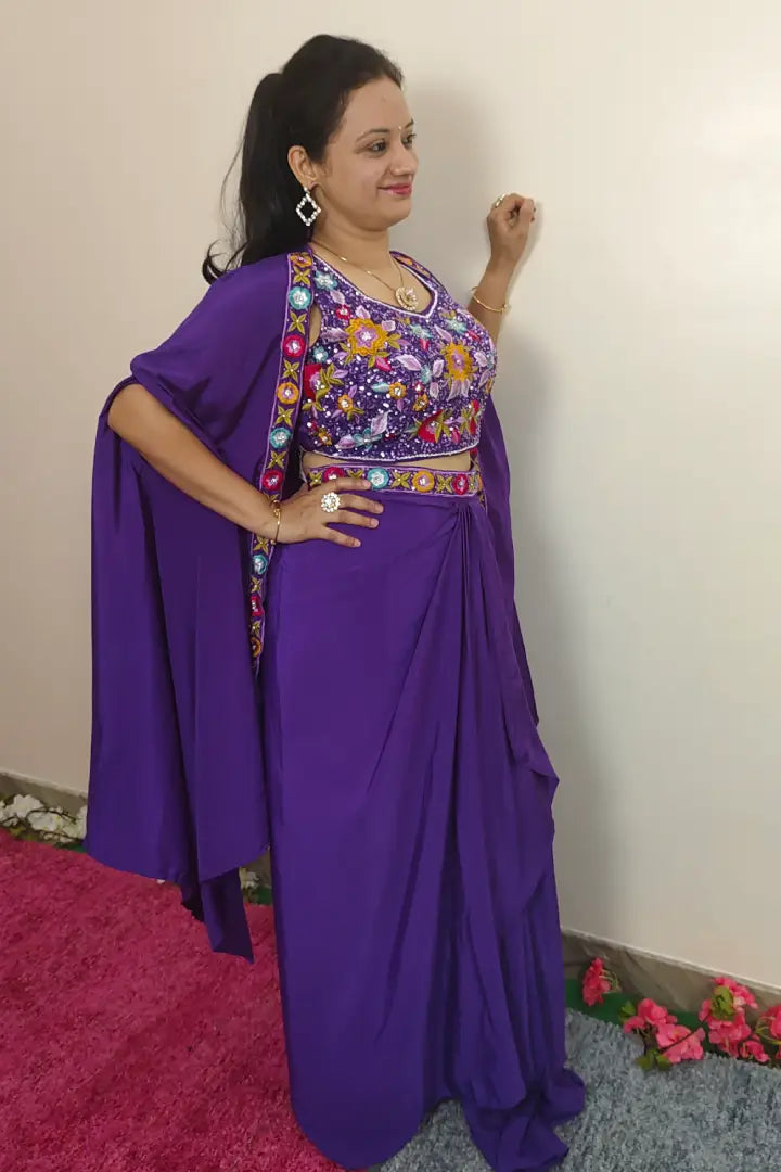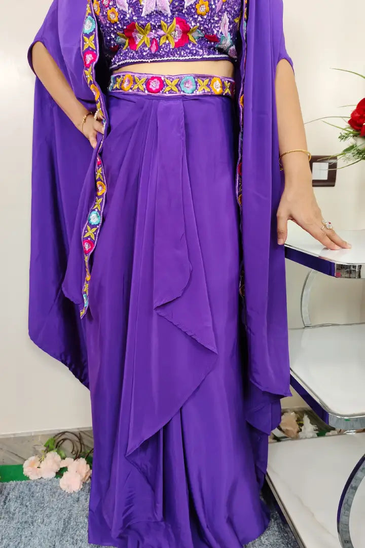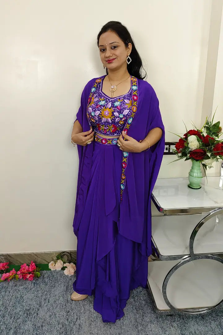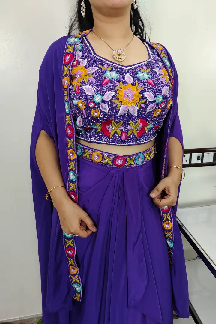 Partywear Indo Western Dress With Shrug With Multi Embroidered Crop Top