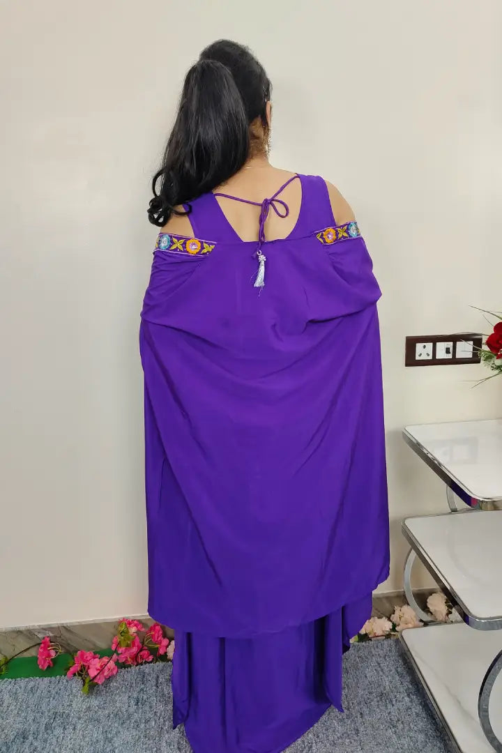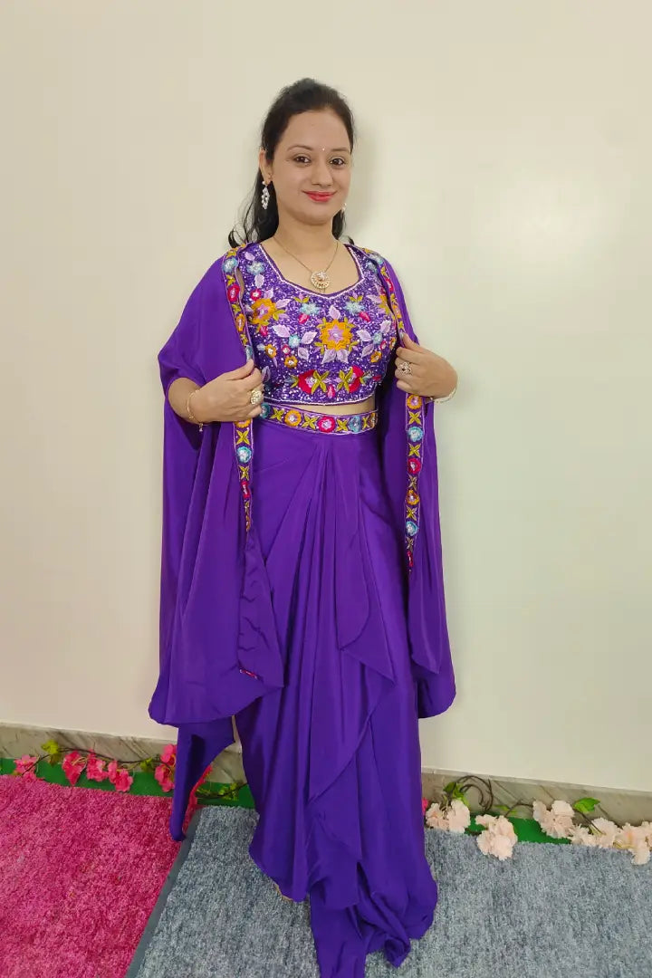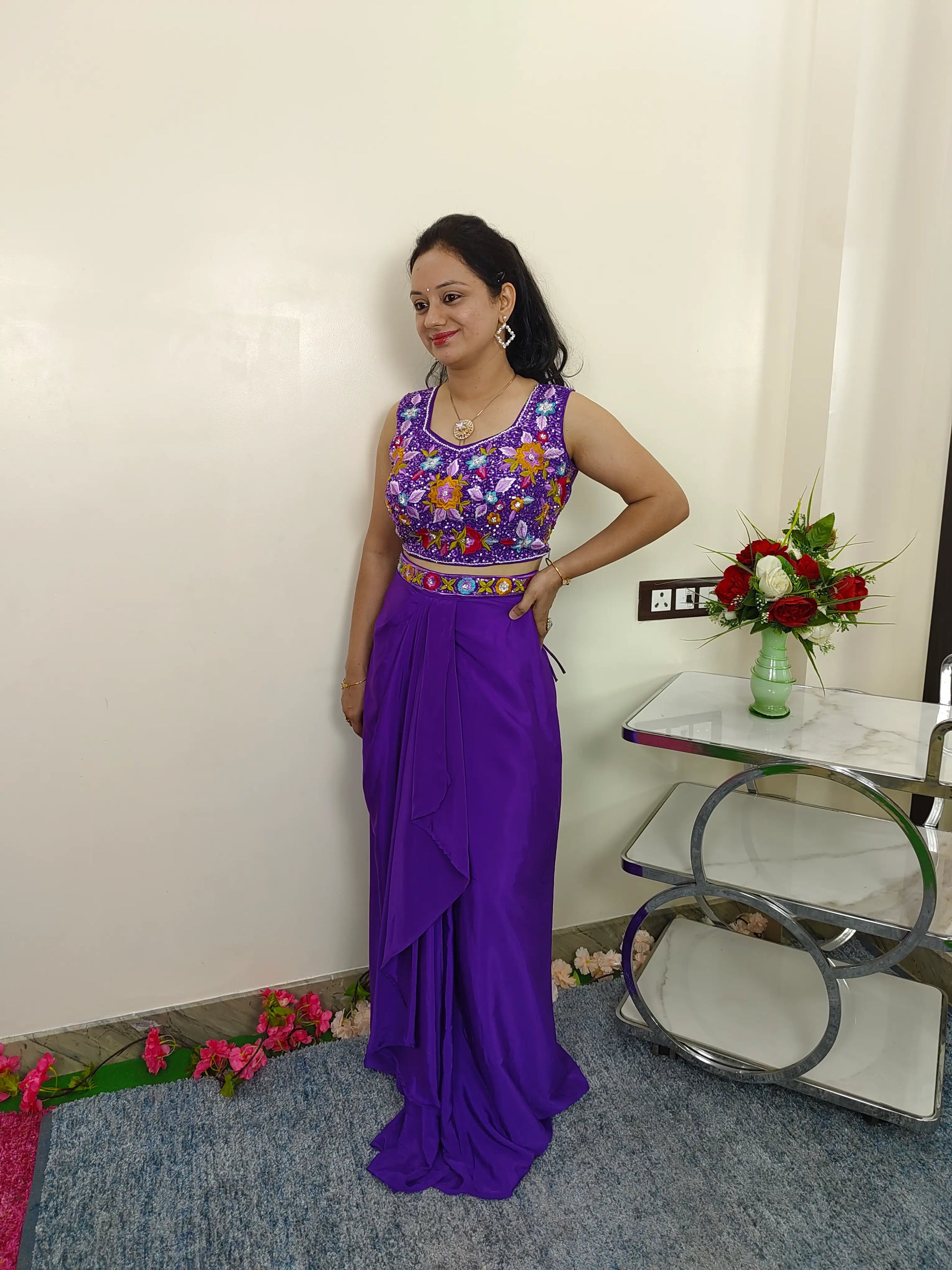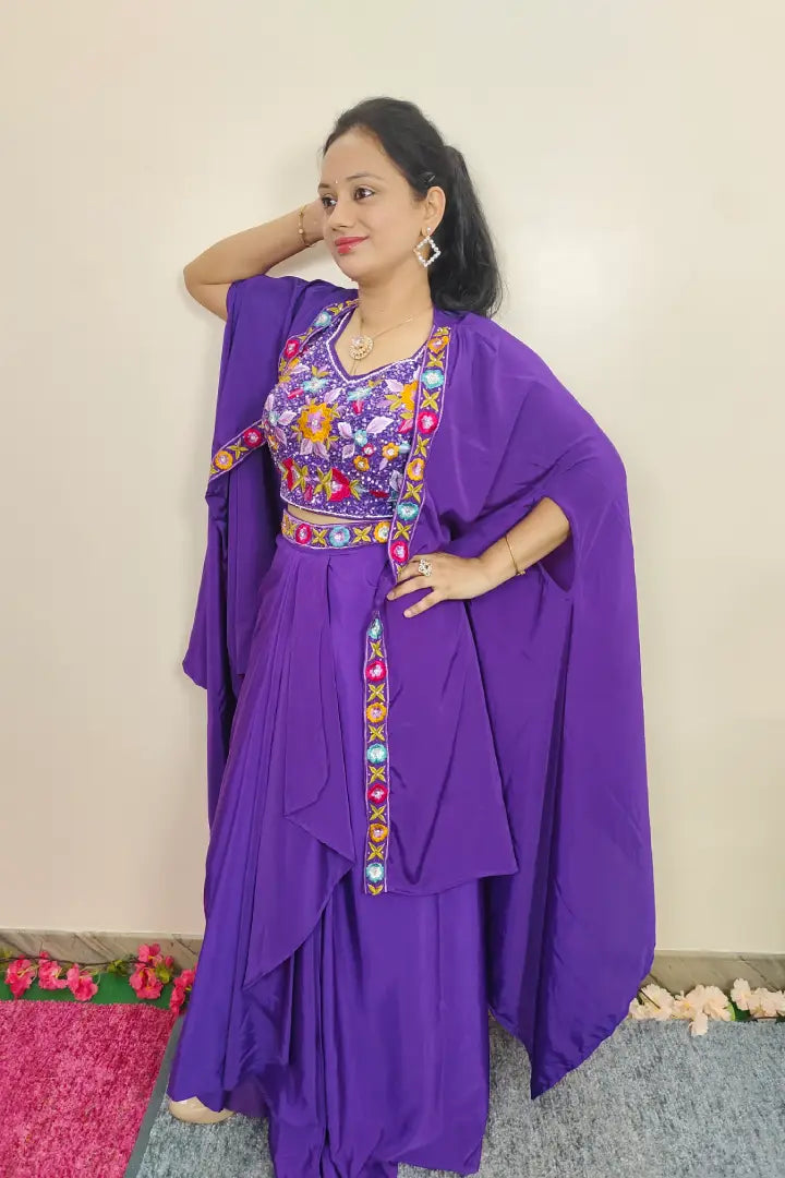 Partywear Indo Western Dress With Shrug With Multi Embroidered Crop Top