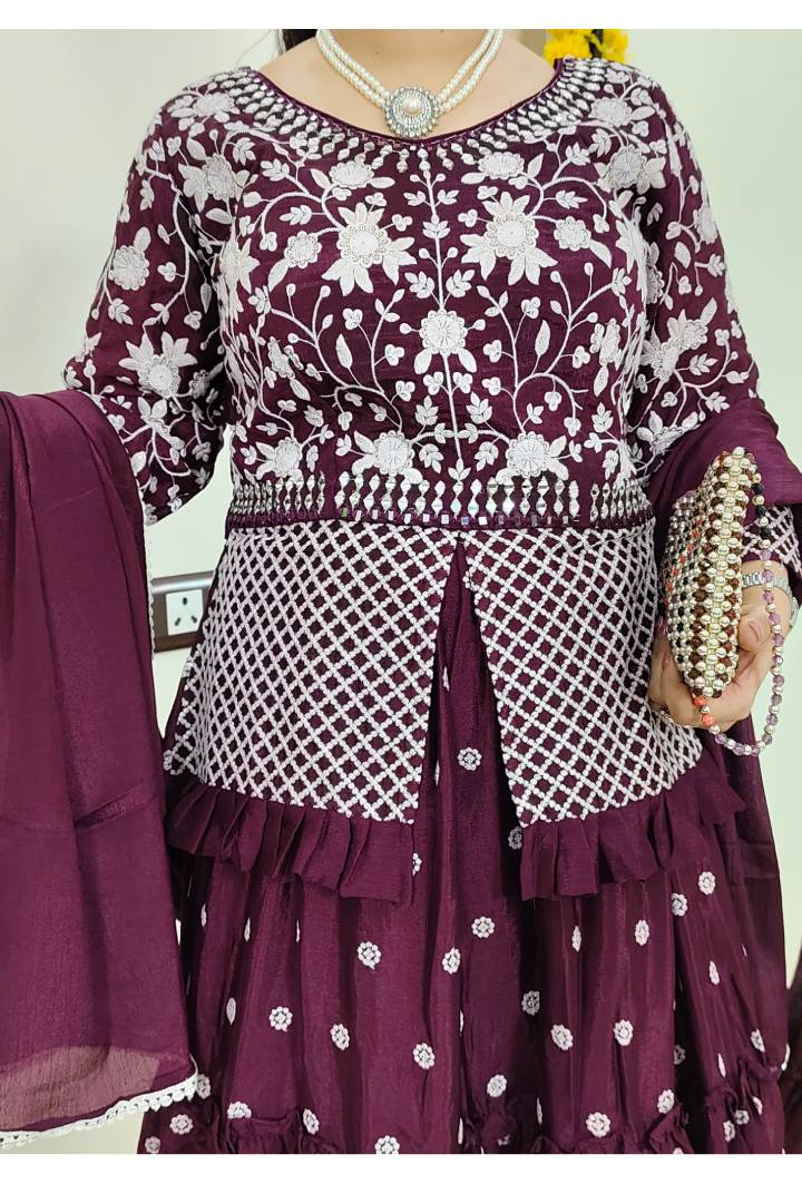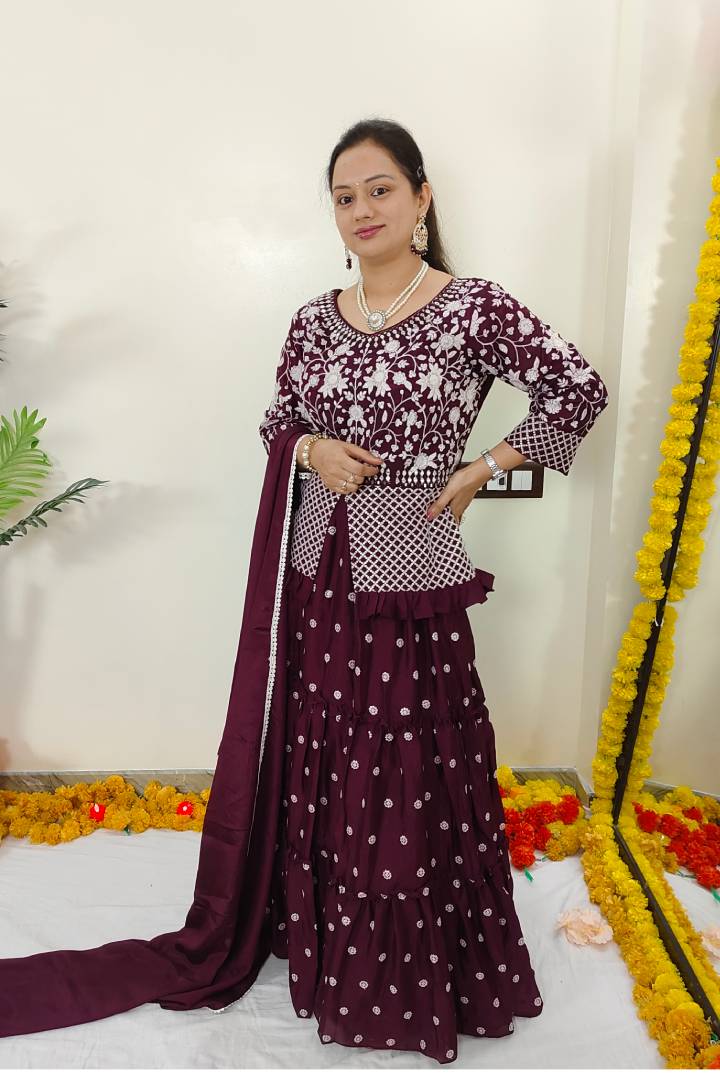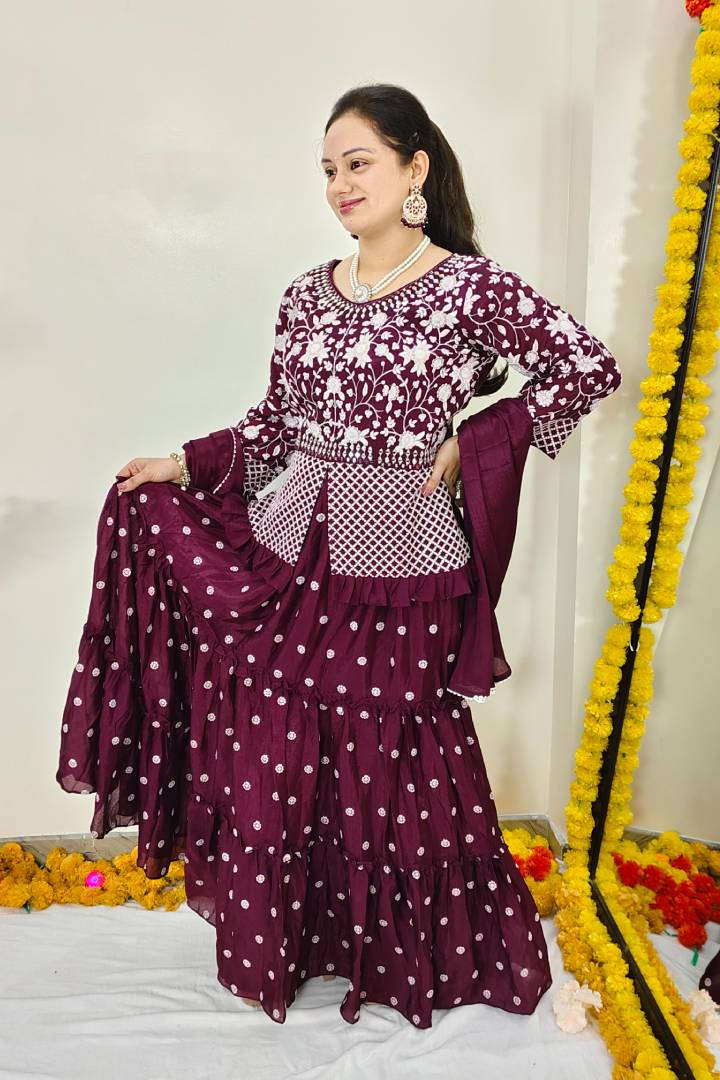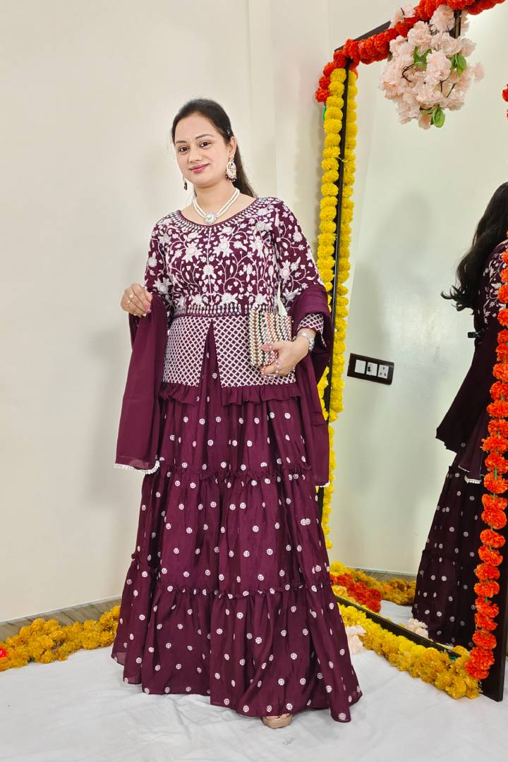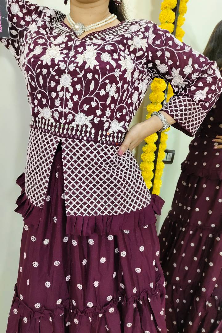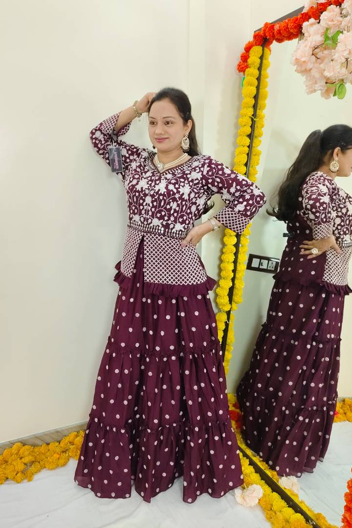 Peplum Indo Western Dress with Skirt in Wine