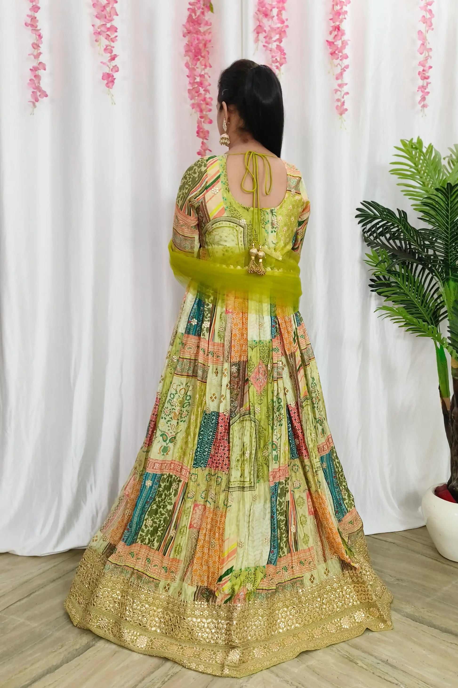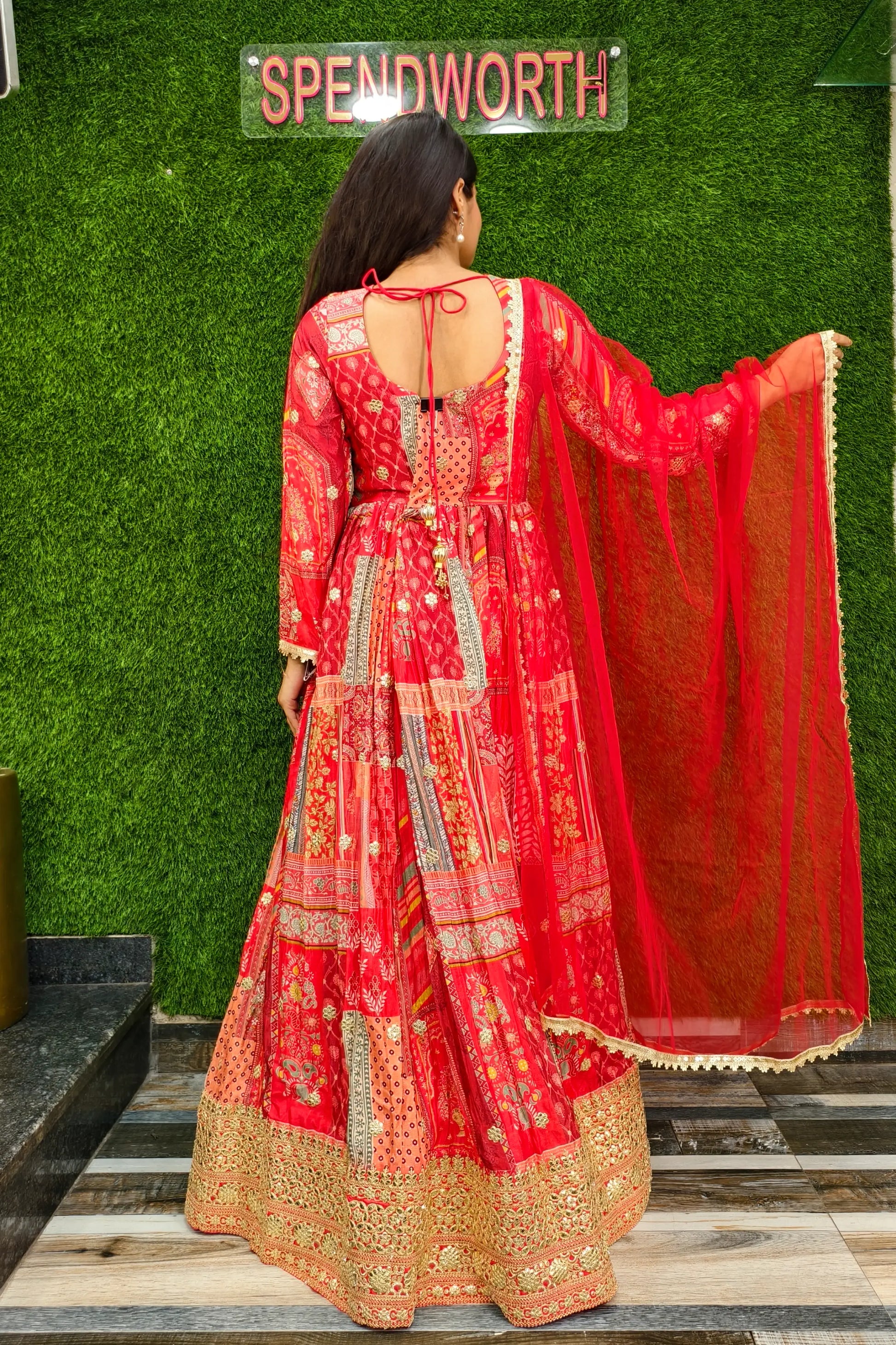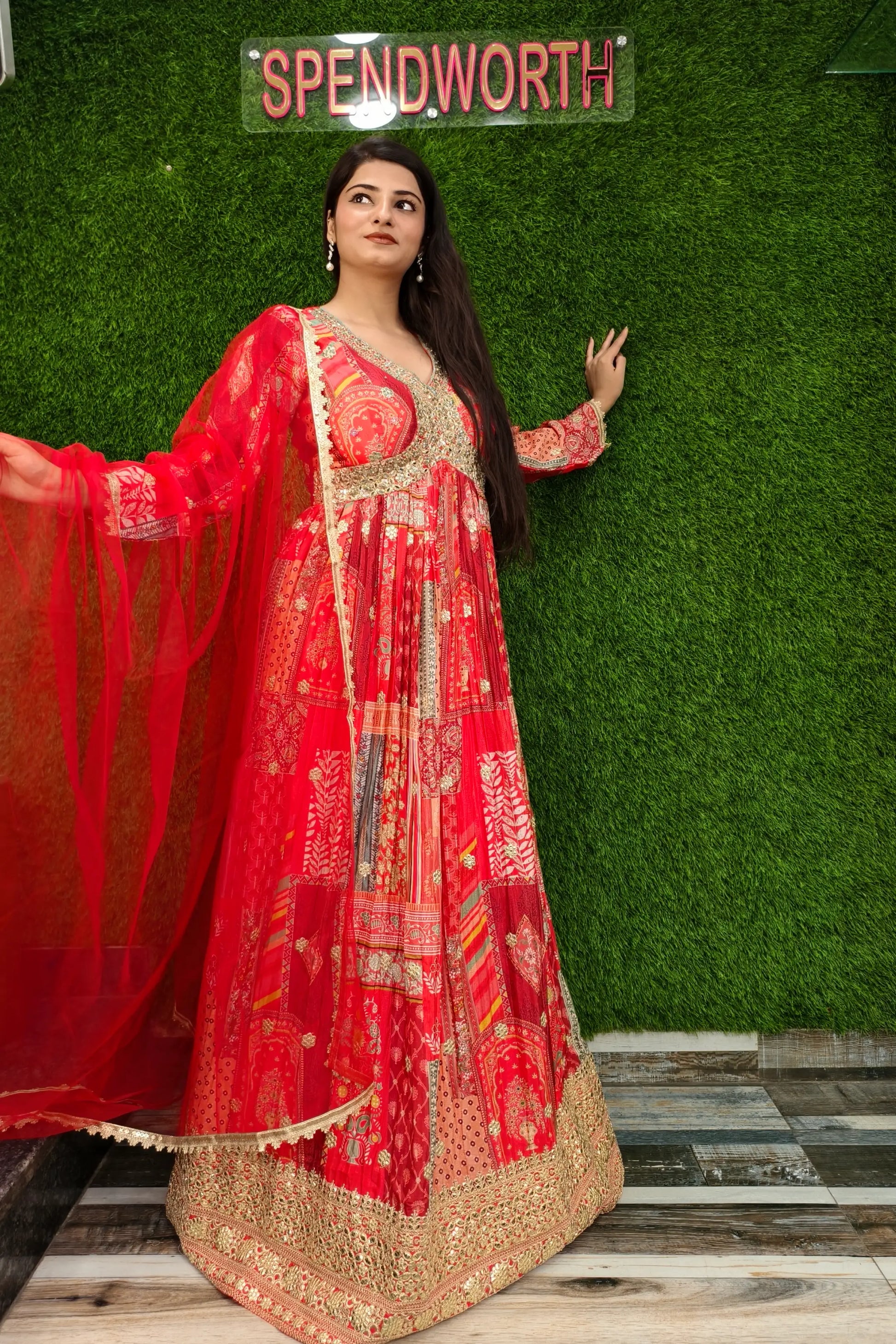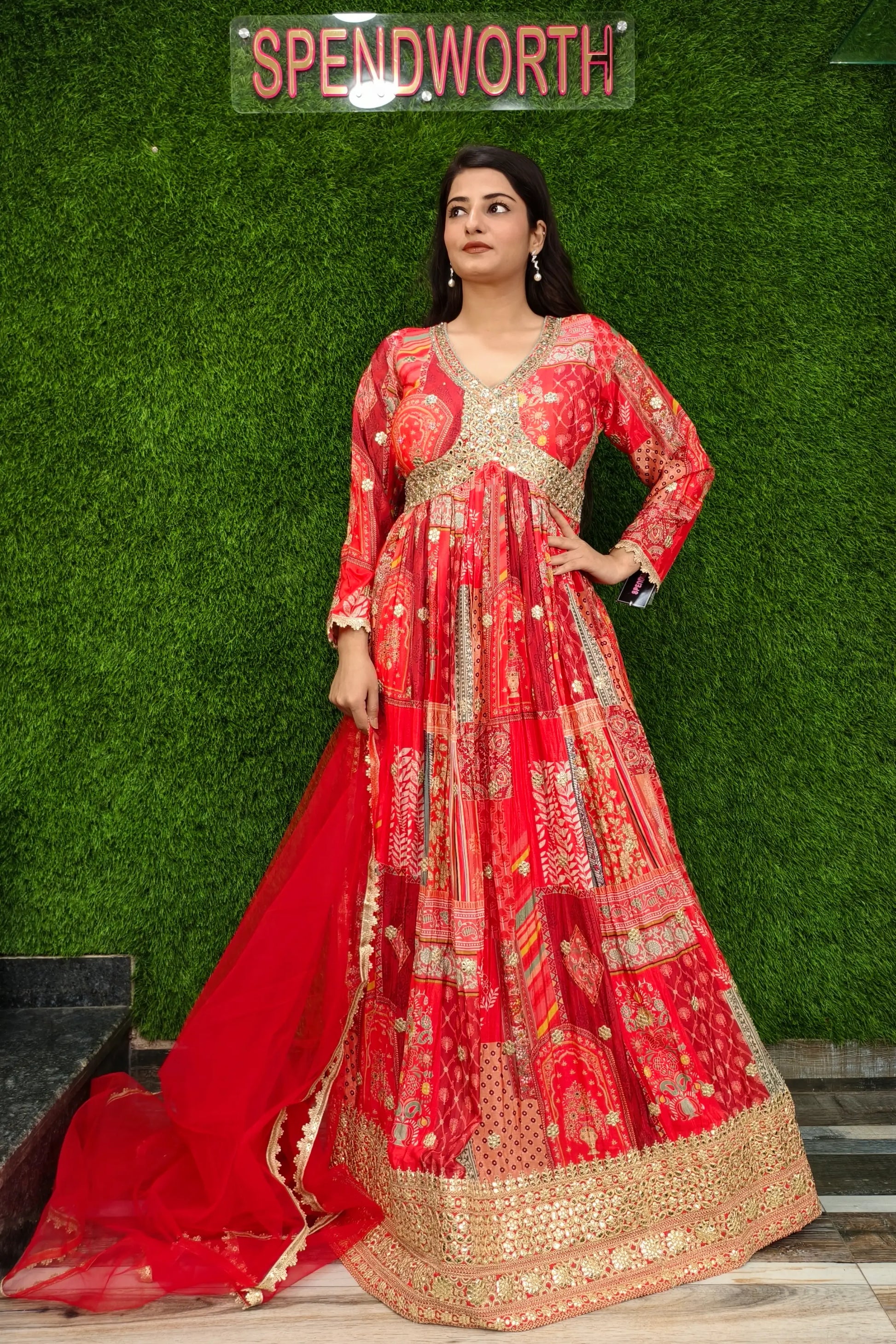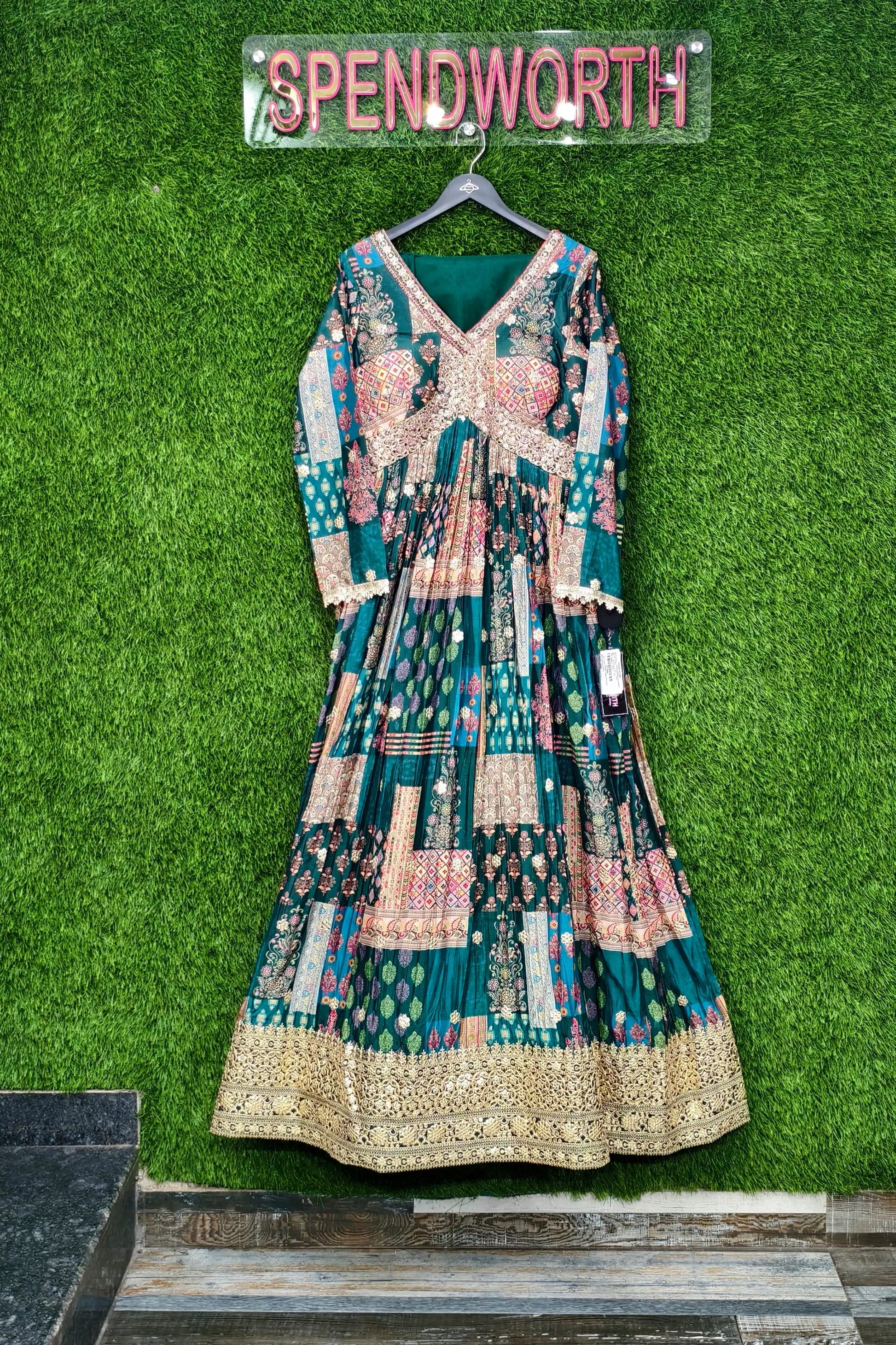 Chinnon Silk Printed Hand Work Anarkali Dress