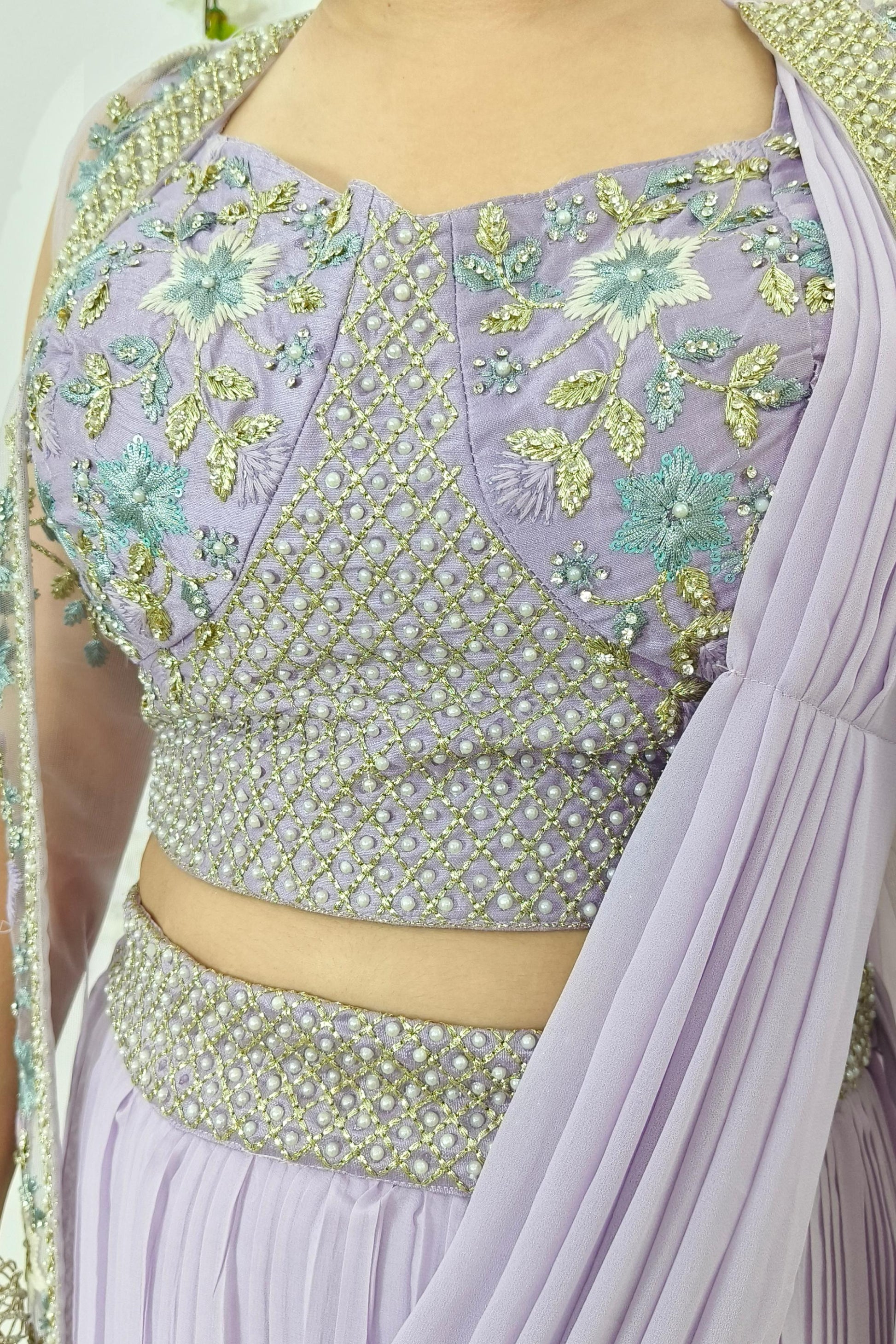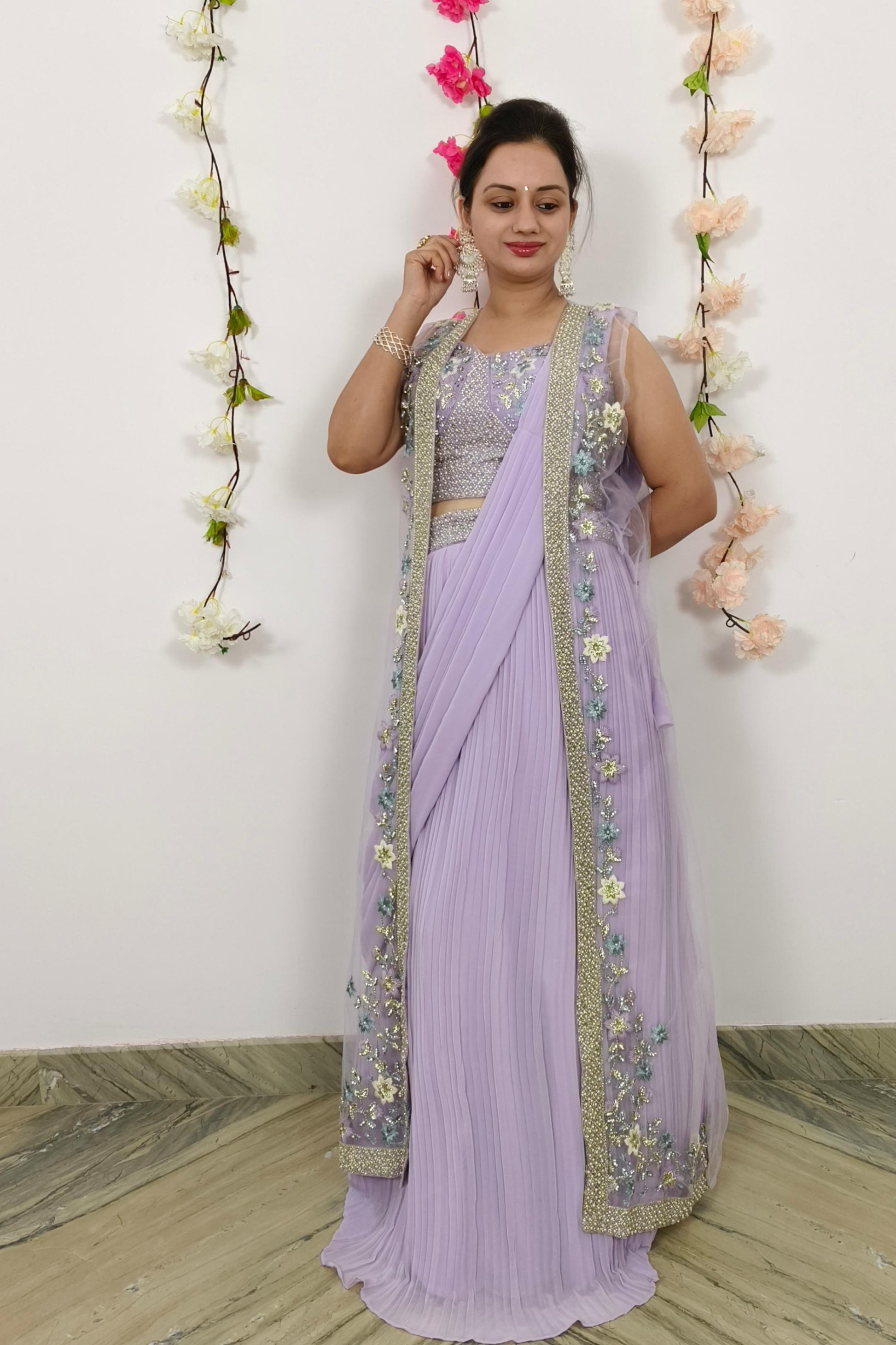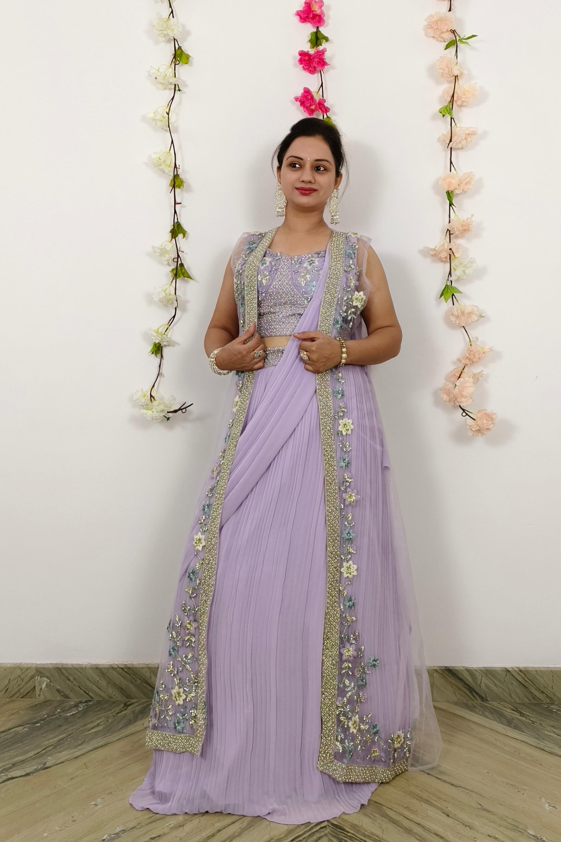 Ready To Wear Drape Dress With Skirt Bottom Alongwith Embroidered Over shrug in Lavender