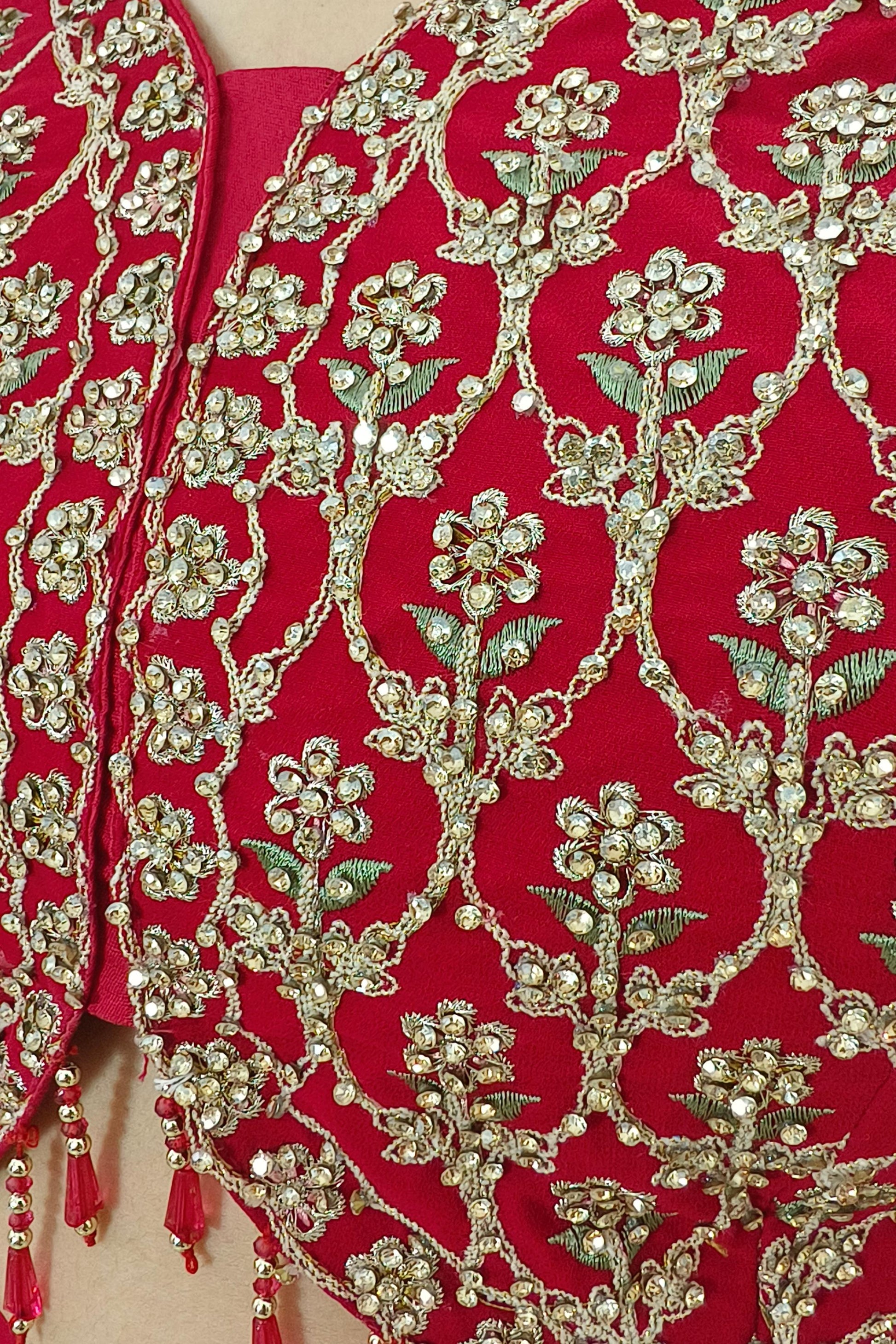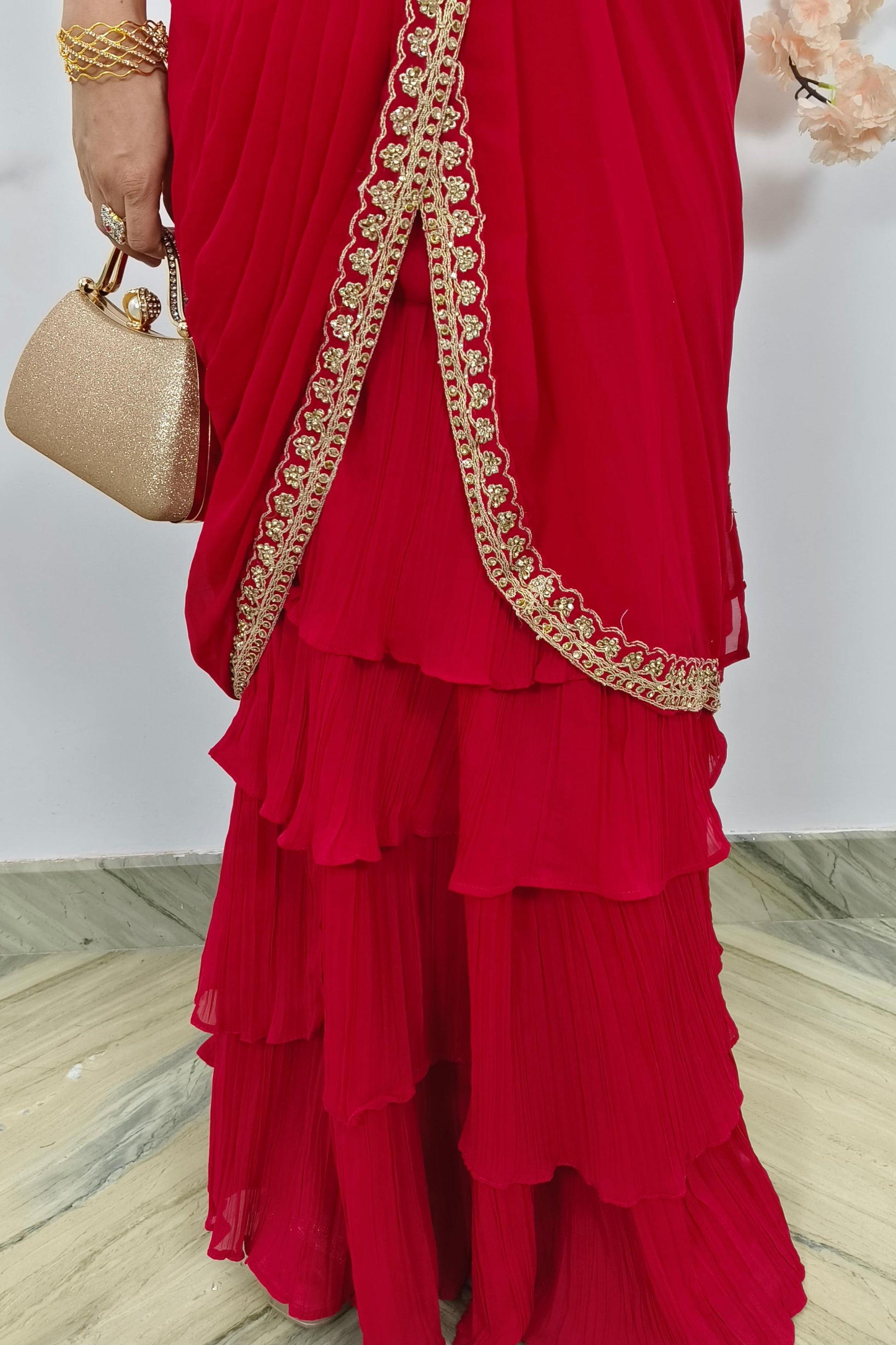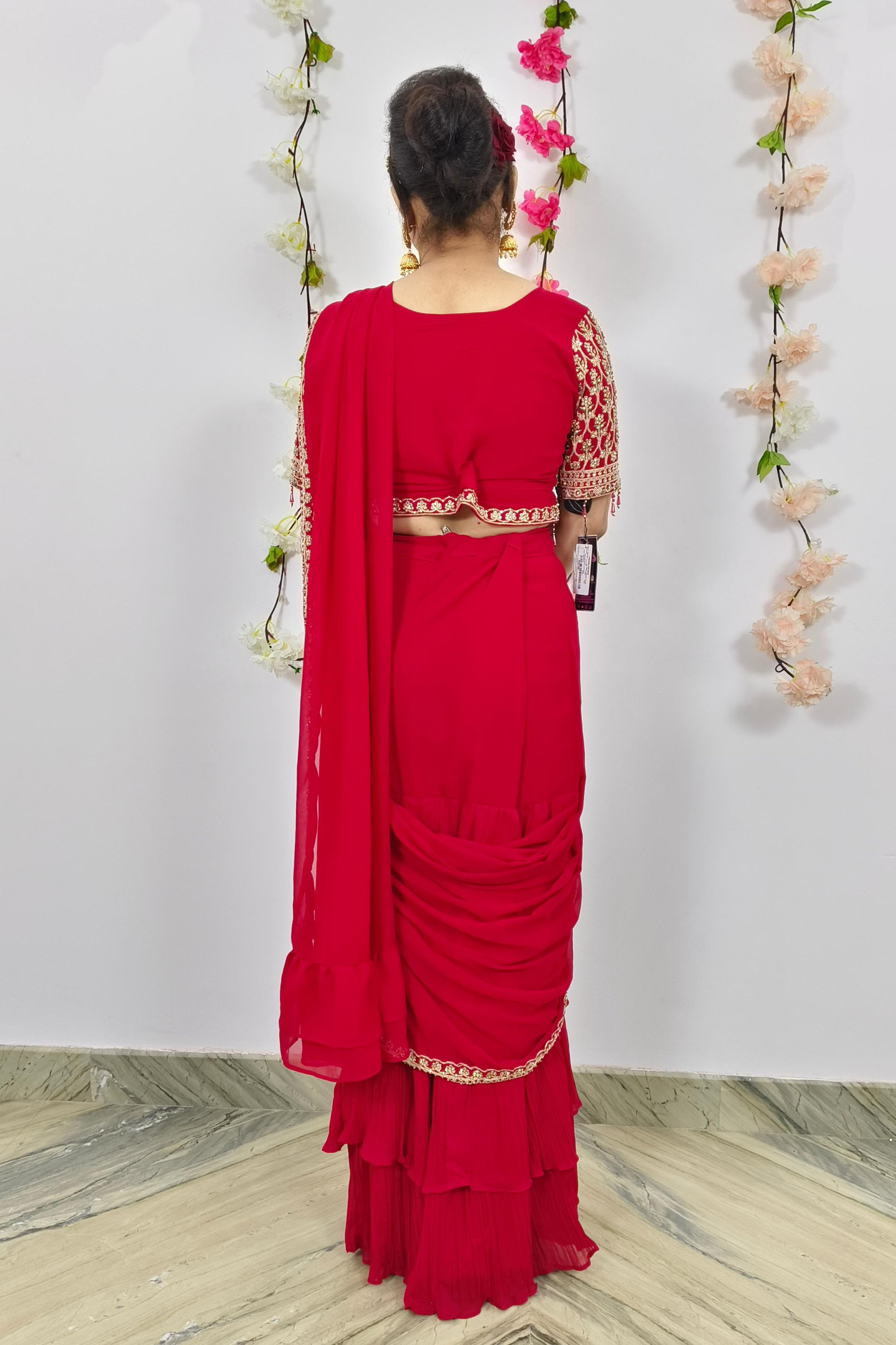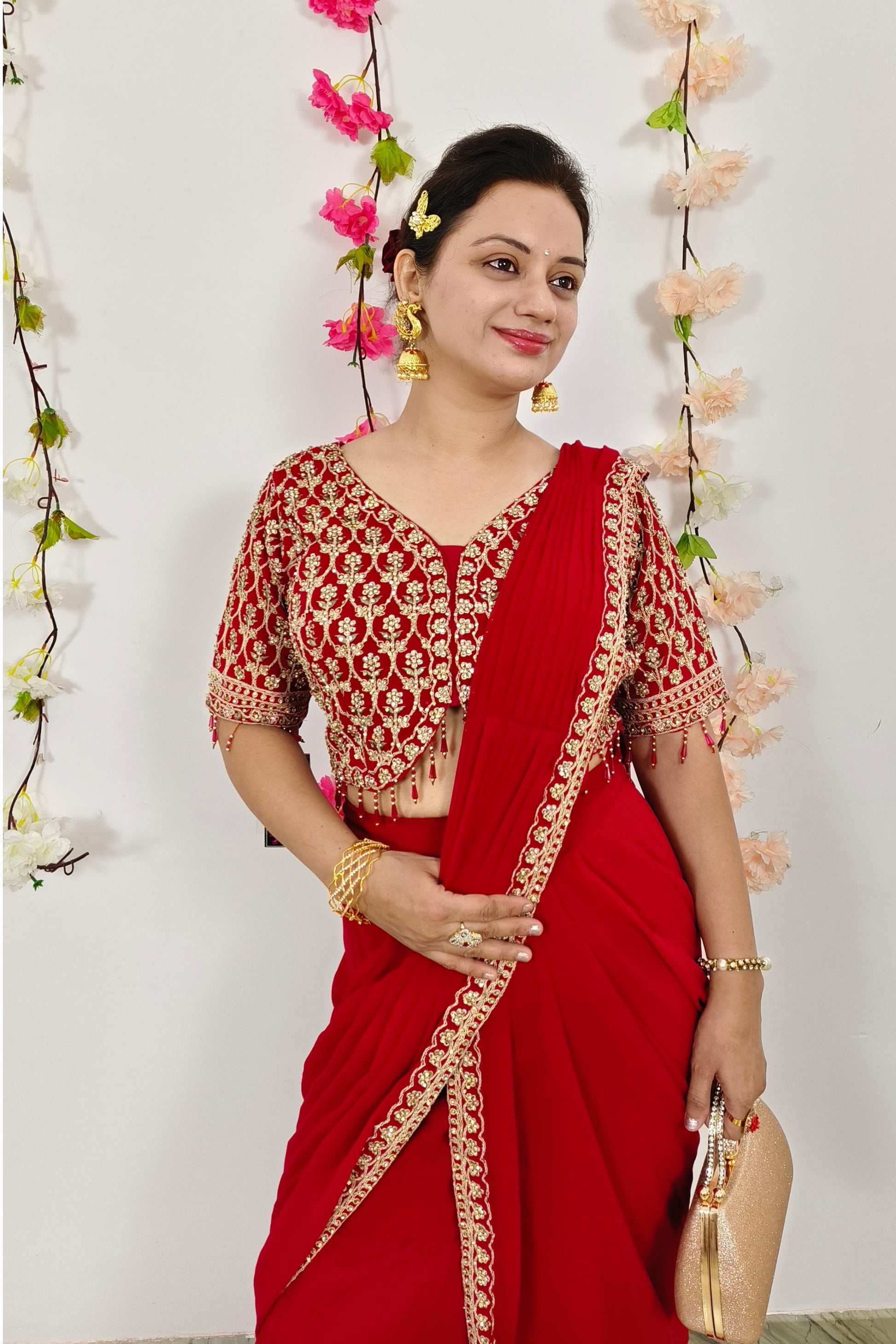 Ready to Wear Georgette Drape Saree With Hand Work Blouse in Red