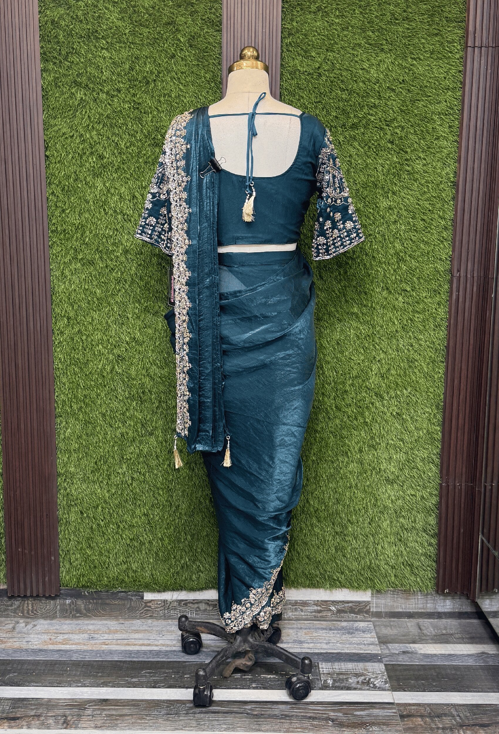Upgrade your ethnic wardrobe with this beautifully designed readymade drape saree crafted in premium organza silk fabric. Featuring delicate hand embellishment work, this saree offers a perfect blend of traditional charm and modern convenience. The pre-stitched drape style makes it easy to wear, saving time while giving you a flawless, elegant look.