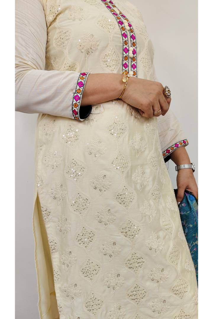 Beautiful Party Wear Kaftan Set with Mirror Work Embroidery